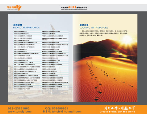 天津广告设计公司 天津VI、logo/标志设计 天津宣传册设计/样本设计/样册设计/画册设计/彩页设计 天津包装设计 天津网站设计 天津展示空间设计 天津广告摄影公司 天津海报设计 天津杂志 期刊 企业内刊设计 天津广告设计印刷公司 |